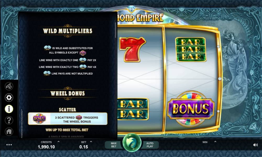 Microgaming company also follows the popular trend. The studio has presented «Diamond Empire» model about diamonds and other gems. Numerous active lines, special symbols and bonus options don't let us take it as a classic slot, but we believe even the desperate fans of the genre would love this game.