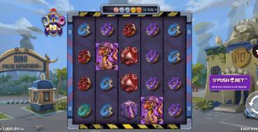 The main high-paying symbols are the dinosaurs themselves, the medium value are their police accessories, and the low signs are the mouth-watering multi-colored doughnuts, which, according to the story, have become the favorite food of the guards of the law.