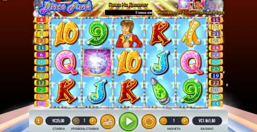 In Disco Funk the field consists of 5 reels with 3 cells on each. High symbols are counted from 2 pieces, low ones from 3, from left to right. Special symbols appear on reels 1 and 5, Scatter on reels 2, 3, and 4. The number of Betways is fixed and is 25. The bet range is from 0.25 to 500 coins. Free spins with a bonus are triggered by a combination of special symbols and Scatter.