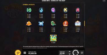 Dorks of the Deep features a 5x4 playing field, with 14 fixed paylines. A standard symbol counting system is used, allowing combinations of 3+ symbols in a row. The bet is chosen from a range of 0.1 to 100 euros, with a maximum win of x10000. The medium volatility makes the slot as attractive as possible. To the delight of players - the Buy Feature will be implemented in most casinos, as this feature is an integral part of the game, offering to purchase one of four bonuses. A total of 3 special and 10 row symbols are involved in the spins, which makes the gameplay somewhat complicated. Compensated for the inconvenience of two WIld symbols available in all game modes.