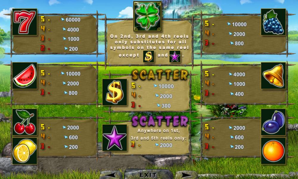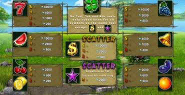 - Wild (a four-leave clover) is imaged at three central reels. It brings no payoffs, but helps making combinations of other elements. It can’t replace Scatters.