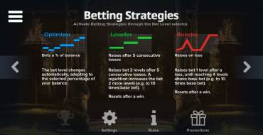 To select a bet, click at the button with coins. It opens a new screen with available options. There you can also choose a strategy (please read more in the special article at Casinoz.club).