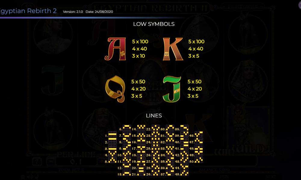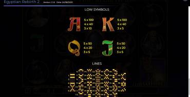 The Egyptian Rebirth II slot machine from the Spinomenal provider has a 5x3 playing field. Payouts are made on 25 fixed lines.