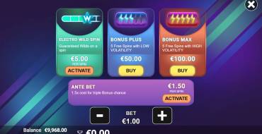 | Bonus games | Free Spins, Wild Multipliers, Nudge, Charge Meter, Buy Feature, Symbols collection, Pay Anywhere, Ante Bet |