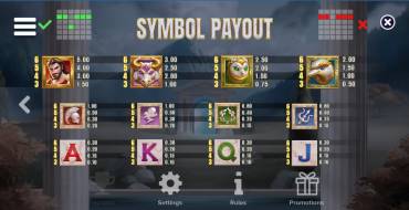 The playing field of Elysian Gold consists of 6 reels, each of which is 4 digits high. Thanks to the Safety Level feature, it can increase upwards up to 8 cells. At the same time, the number of winning lines will also increase. The combination requires the placement of 3+ identical symbols on neighboring reels. The played symbols are eliminated, and new ones are dropped in their place. The player can set the bet size using the button with the image of coins, in the range from 0.2 to 100 c.u.u. The machine is characterized by high volatility, and the potential maximum winnings can reach x25000 from the selected bet. The game involves 12 base symbols and 5 special symbols (not counting Split), which have special features.