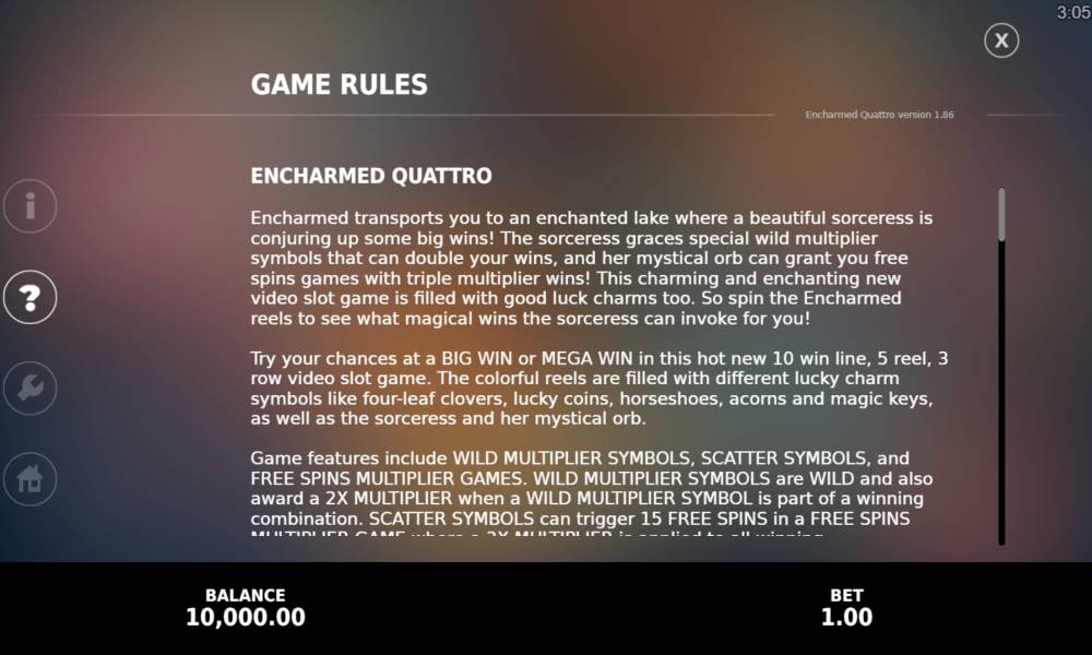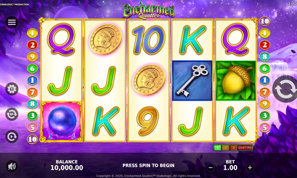 The Encharmed slot from the provider Spinomenal has a classic playing field, which consists of 5 reels with 3 symbols each. All payments are made on 10 paylines, the number of which can be changed.