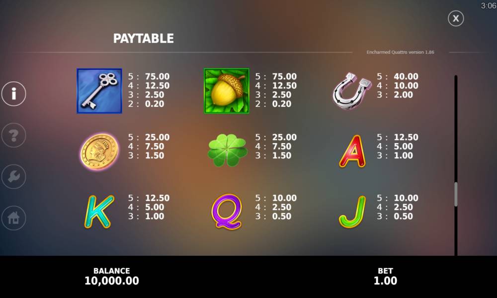 Find out the value of symbols you can in slot paytable. You can find it both in the game menu and in our gallery.
