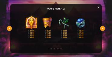 A total of 3600 combinations pay according to the principle of Ways Pays - payouts accrue if at least 1 identical symbol appears on 3+ reels in a row, starting from the first from the left. The maximum amount the slot pays is x25000 of the bet. You can bet from 0.50 to 40 euros (if the casino uses another currency - then in it).
