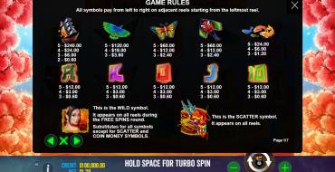 The Floating Dragon slot machine from the Pragmatic Play provider has a standard playing field, consisting of 5 reels with 3 symbols. Payouts are made on 10 lines.