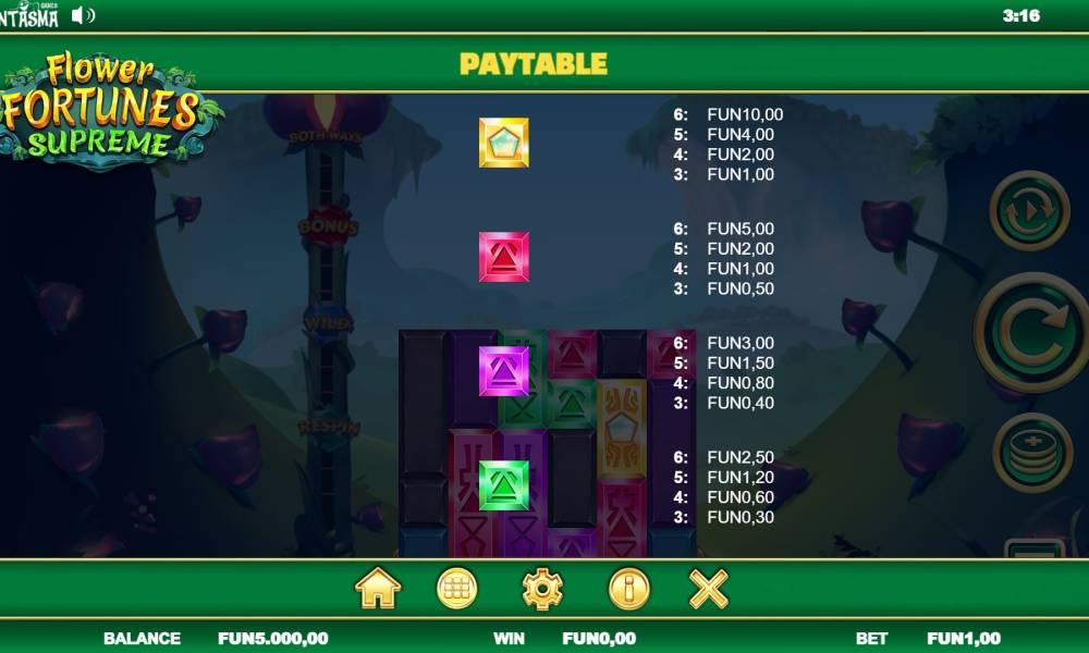 The Flower Fortunes Supreme slot machine from the Fantasma provider is dedicated to the flower theme. If you're lucky, you can win large prizes, up to 5,000 bets.