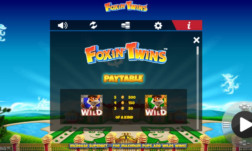 The Foxin’ Twins online video slot has two screens with five reels at each. Both of them offer twenty-five active lines.