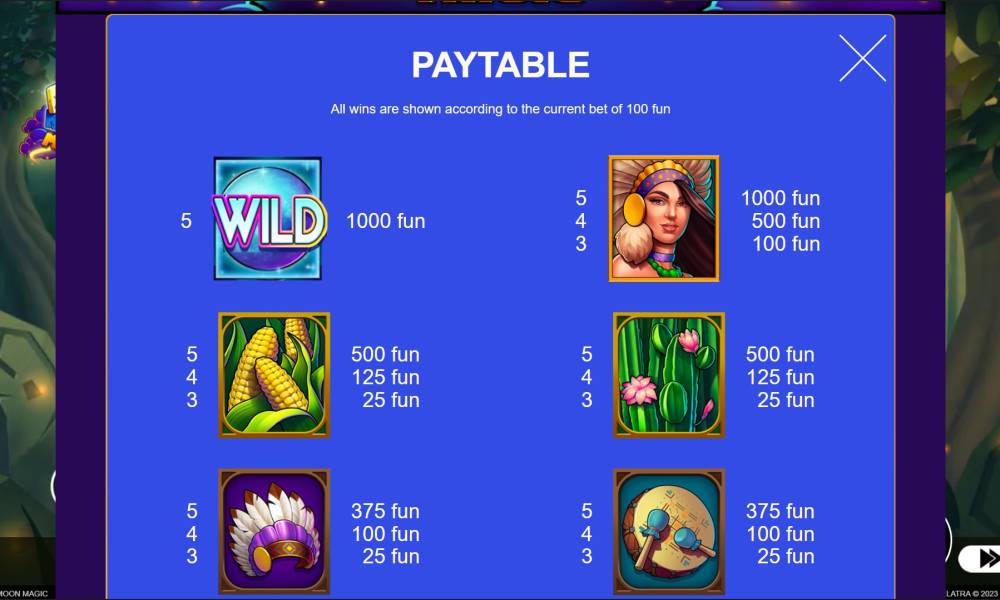 Full Moon Magic slot machine offers the user to make a journey into the past of mainland America and get into the atmosphere of Indian mystical rituals with superstitions. Labor in the harvest fields, pipes on the herbs and a little magic accompany the daily life of the indigenous population. Well, the Moon Goddess makes the slot quite lucrative!