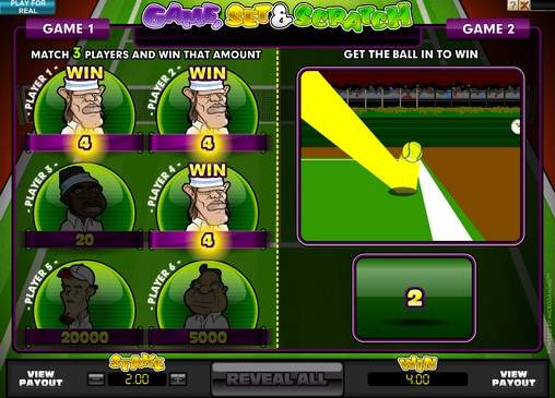 Game, Set & Scratch is a free online scratch card that consists of two independent rounds, which are played for one bet.