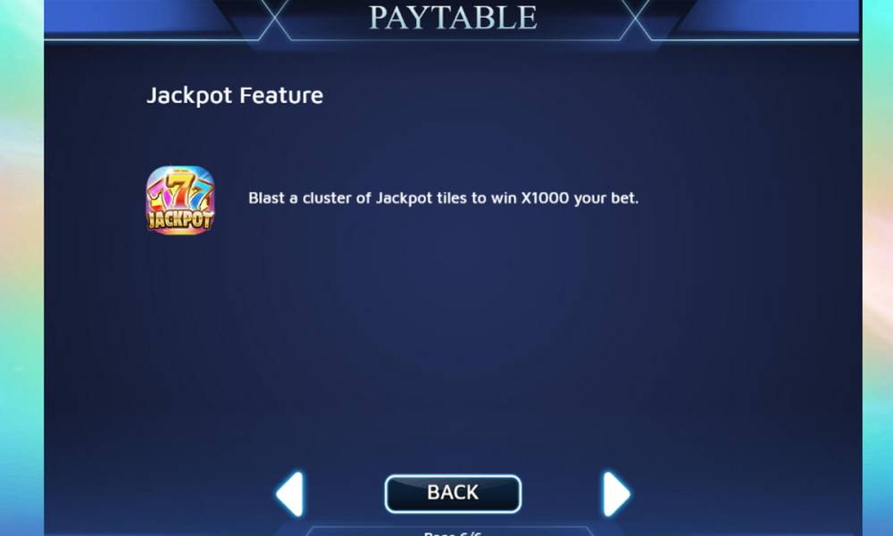 Jackpot Feature. The appearance of 3 or more symbols provides a win of x1,000 bets.
