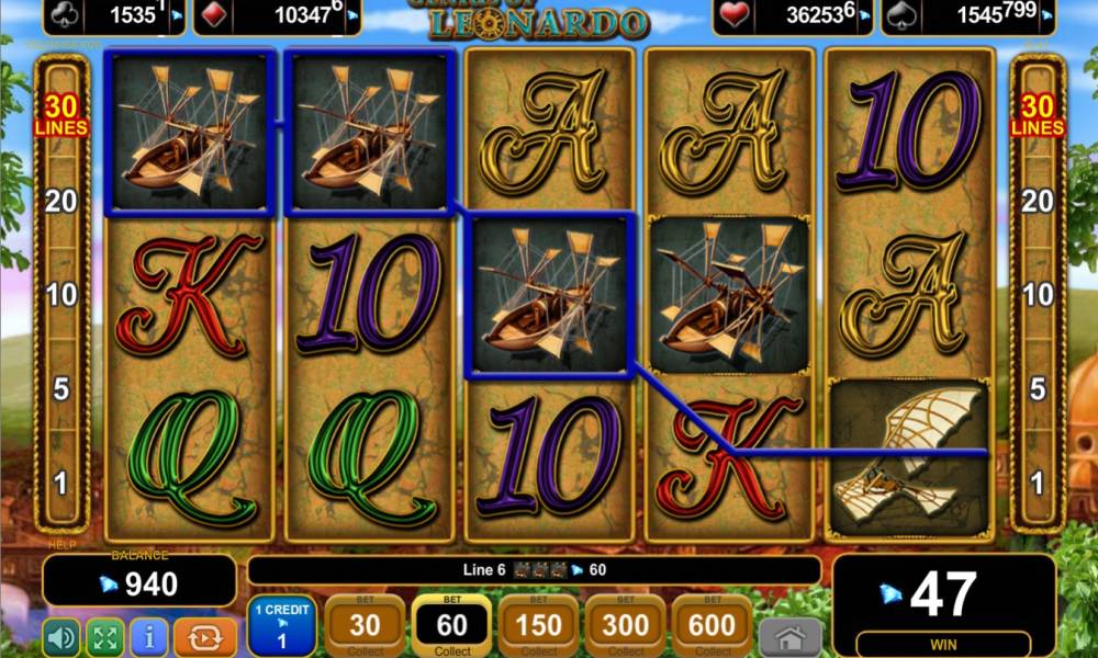 United jackpots by EGT available in all models of this producer are drawn in «Genius of Leonardo». To win one of them, you need to get into the special round. It can be triggered during any regular spin. Jackpots are named after card suits and drawn in a proper way. Twelve cards appear at the screen. The gambler picks them randomly until he gathers three of the same suit. An appropriate progressive amount is his bounty. Please read about nuances of the progressive jackpots by EGT in the special article at Casinoz.
