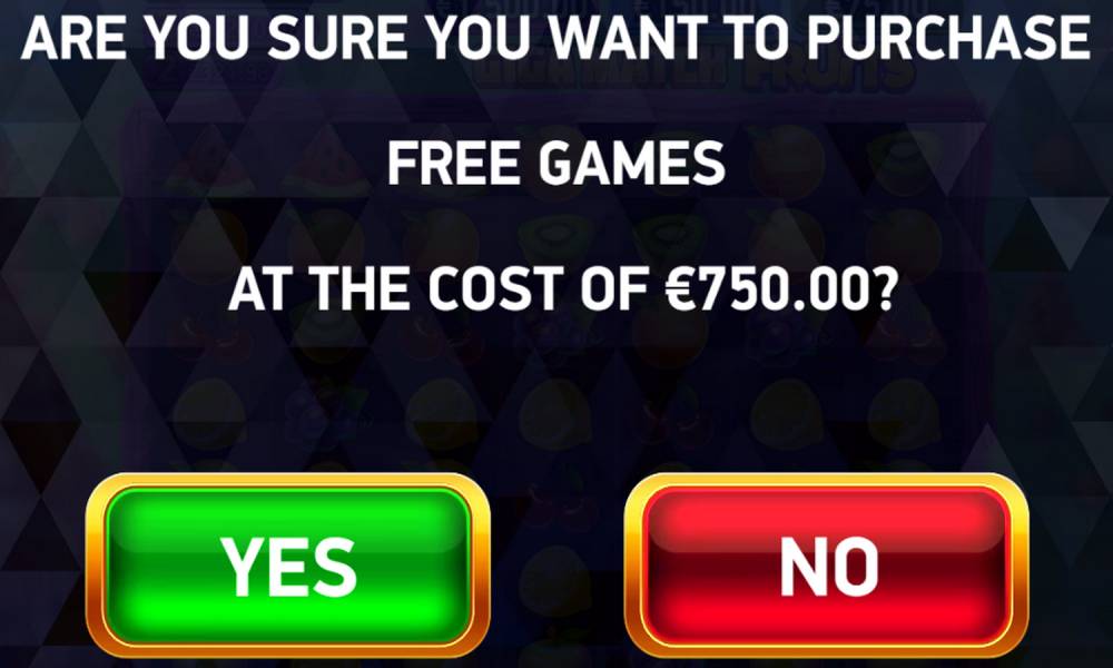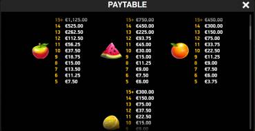 The slot has a bright color scheme, a blurred background and a clearly marked field. On the computer, it looks very small. Some of the symbols (for example, apple and orange) look similar to each other. To the left of the field is a green Buy Feature button. Above the field is information about jackpots - their current size is shown on the right. On the left is shown by what amounts the jackpots will increase in a series of cascades. At the bottom there are 2 separate blocks. The black bar at the bottom of the screen contains the balance, the sound adjustment button and a link to the rules section. Above it there is a control block. It is divided into 3 parts. On the left are the i button (payout table) and buttons to change the bet. In the center is a window where information about the winnings appears. On the right are the start buttons - manual, automatic and Turbo (it speeds up/slows down the movement of the drums). For gamblers we have some tips: