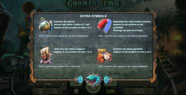 Let’s discuss prize features of «Gnomes’ Gems» video slot. First of all, we would like to talk about functions of Extra symbols: