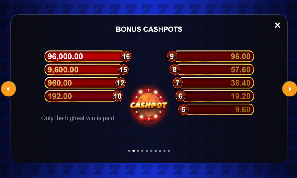 Additional features of the slot include freespins, instant payouts for 5+ Cashpot symbols, additional Wild multipliers and the ability to choose their size via HyperBet.