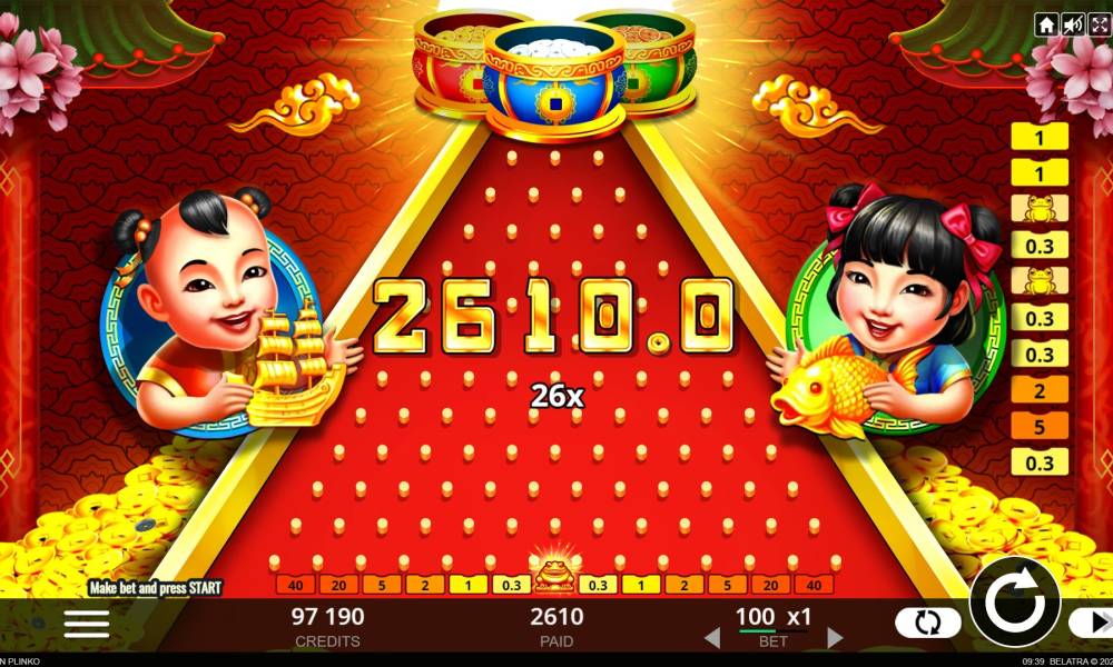 The Golden Plinko slot is an electronic version of a folk Chinese game that is often found at fairs and during festivals. Relying on Luck, the player can pull off a pretty big score, with her favor. Unfortunately, the provider Belatra has a huge number of advantages, but this slot can not be called successful.