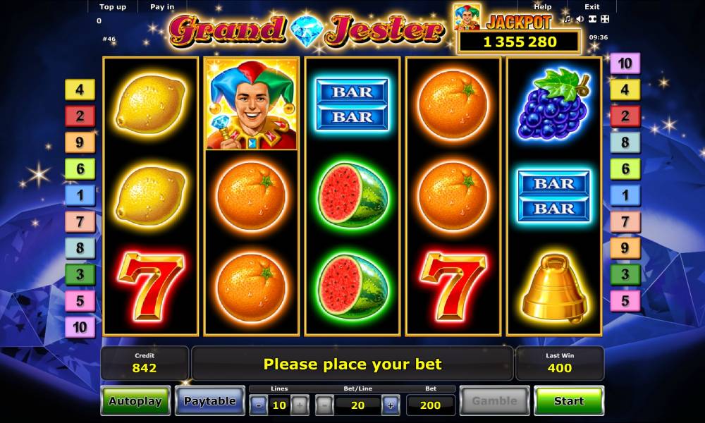 Novomatic company keeps developing their line of slot machines with classic symbols at the screen and traditional gaming features. One of such novelties of the famous brand is «Grand Jester» video slot. It is not going to surprise you by original topic, unique options or a super spectacular animation. However the game is able to interest by good payouts, a huge jackpot and special bonuses, discussed in the following review by Casinoz.