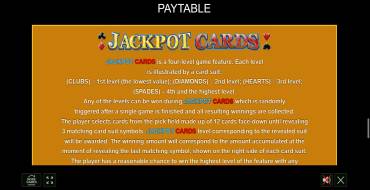 Break the progressive jackpot can every user. But only activated round Jackpot Cards is quite rare, so you need to have a lot of luck. To get the prize, you need to open three identical cards on the field. Their suit will correspond to the jackpot - spades, hearts, diamonds or clubs. The size of the award is not stable, but it is easy to know it at the moment - it is displayed above the reels.