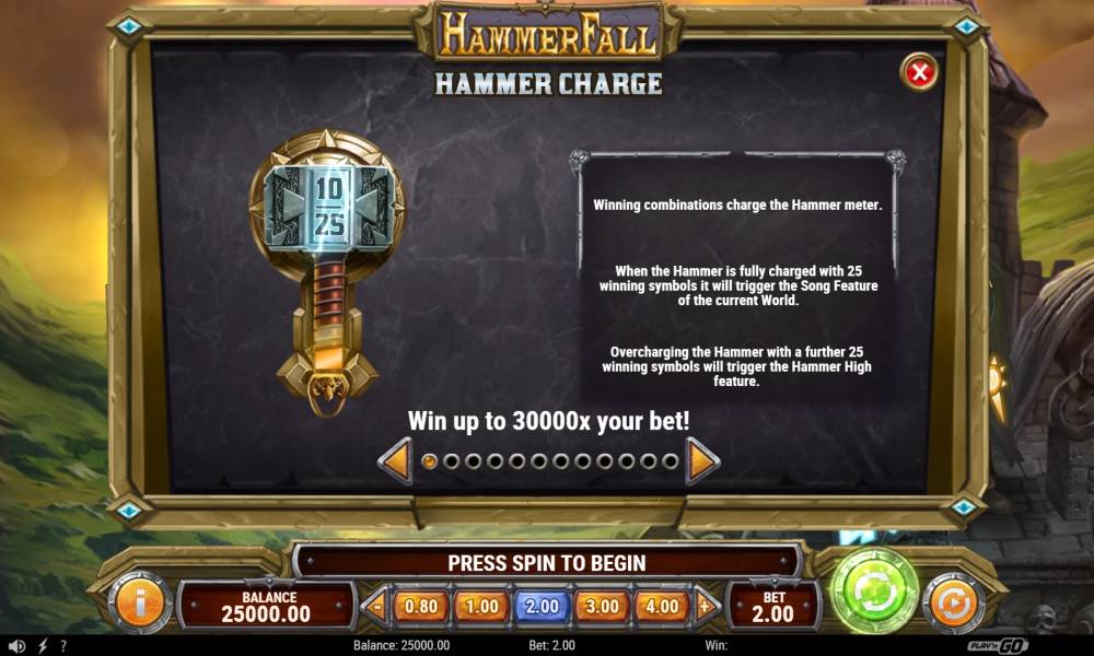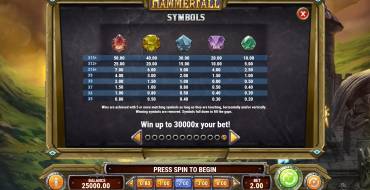 The Hammerfall slot machine from the Play’n Go provider has a standard playing field, consisting of 7 reels with 7 symbols. Payouts are made on the Cluster Pays system.