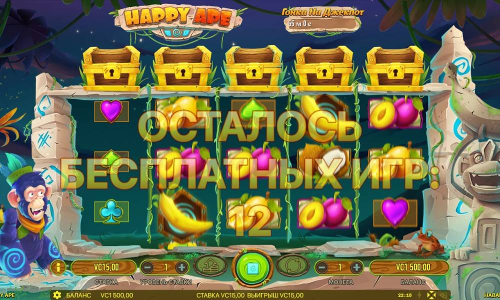 The Happy Ape slot is a participant in the Jackpot Race from the developer Habanero. Every few hours, a special event is activated, during which players who bet the highest amounts on the slots of a given provider will divide the accumulated bank among themselves. The Jackpot Race itself lasts 5 minutes.