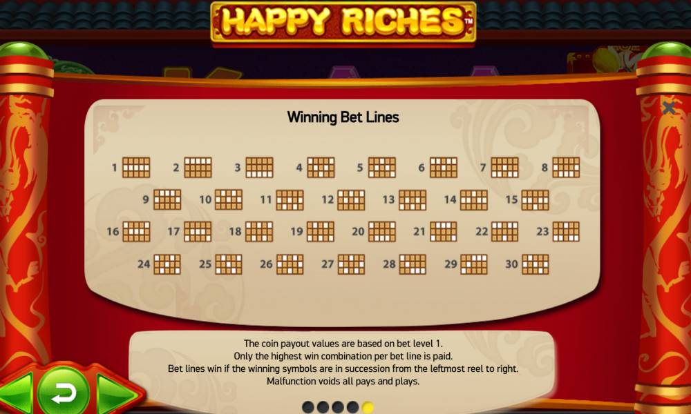 You can get from reading to practice in the demo. It's available at many casinos, but it's easier to play the Happy Riches demo on the same page. We've added the demo game to the beginning of the review. It starts without registration, is completely free, and has 1000 points for betting.