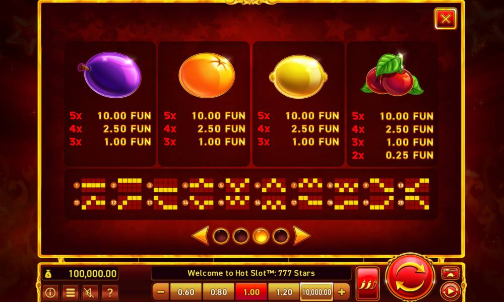 Hot Slot: 777 Stars offers a standard RTP of 96.1%, which is average for modern video slots. The flexible volatility setting allows players to choose between frequent small wins or more infrequent but large payouts.