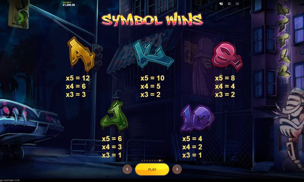 The Hustling slot machine from the Red Tiger provider has a standard playing field, consisting of 5 reels with 3 symbols. Payouts are made on 10 lines.