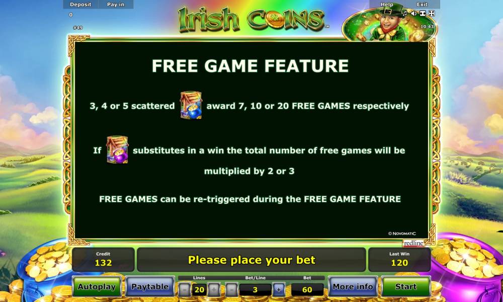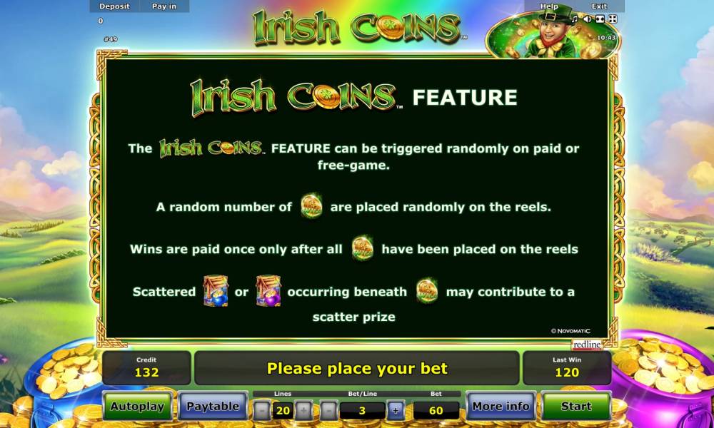 The Irish Coins Feature game is characterized by medium volatility. This means that you will get medium-sized wins with medium frequency.
