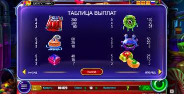 The green monster is the only single symbol. As soon as it lands on the screen, he explodes and loads the entire reel with one of the basic symbols.