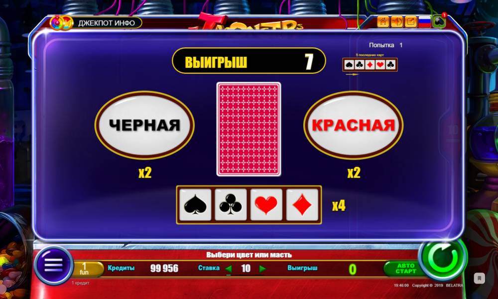 The user can try to multiply his win during the gamble feature. Click at 'Gamble' after any paid spin if you decide to play. There are 3 different options: