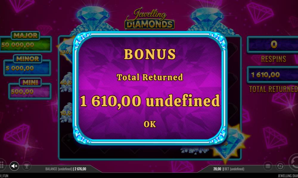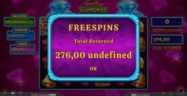 I can recommend Jewelling Diamonds to those who have sufficient gaming experience and can afford to take risks on the edge of the foul. It may seem that in case of a prolonged winless period the situation will be remedied by buying a bonus feature. But often the amount given is only partially returned. And that strange laughter behind the scenes, as well as cheerful festive music, which are not conducive to a relaxed game...