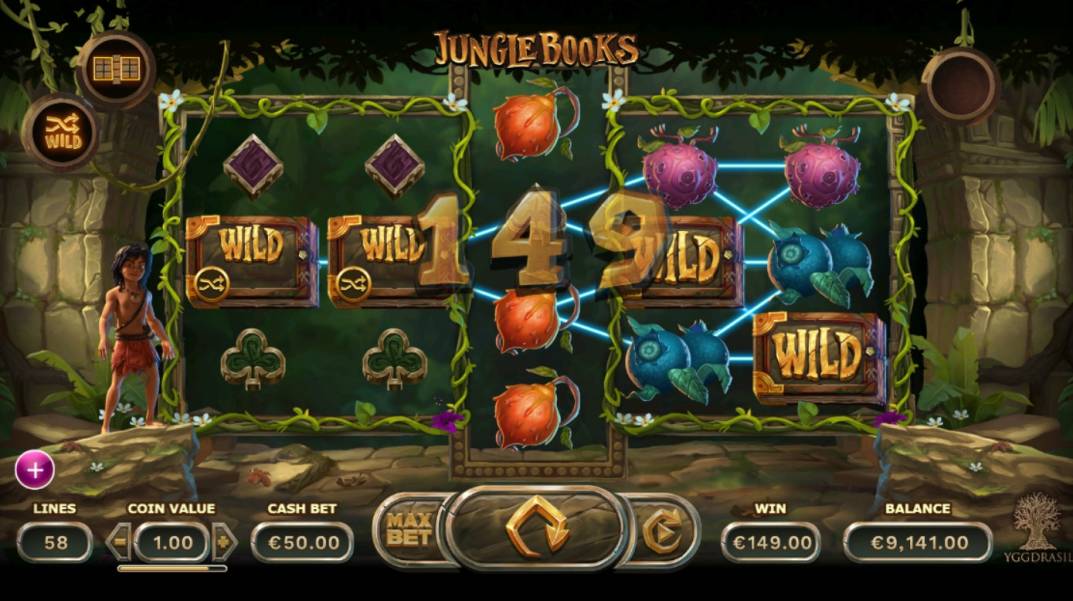 «Jungle Books» online video slot, developed by Yggdrasil company, was devoted to Mowgli, the hero of several novels by Rudyard Kipling of «Jungle Book» series. There is no need to introduce such a famous character. All we were reading to tatters stories about the boy grown up by wolves headed by Akela and patronized by Bagheera the panther, Baloo the bear and Kaa the boa later, in our childhood.