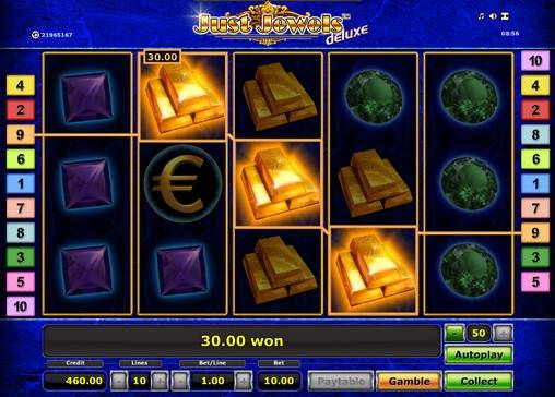 «Just Jewels Deluxe» is the slot machine developed by Novomatic, which has five reels and ten pay line. This slot machine has quite simple rules. There is just one special symbols (Scatter). An amount of the minimal