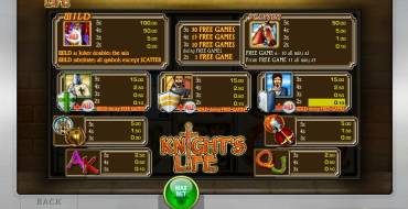 Our reviewers think that the most interesting features of Knight’s Life video slot are the options of prize spins during which payoff indexes increase with every round and extra Wilds are in force. The quality of graphics can hardly be called very high. The cash back index neither impresses. Meanwhile, the interface is very convenient and user-friendly in any language.