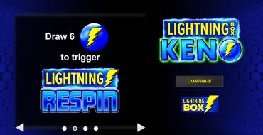 Keno slot has a familiar chip provider - Lightning Respin round. It is activated by the fallout of 6 or more lightning bolts on the playing field. The user is given a reel with five reels and three free spins. Before each spin, lightning illuminates from 1 to 5 columns. If a jackpot or just a payout falls on them, they are dropped on the counter and the respins are resumed up to three. This can continue as long as prizes linger on the active reels. If three rounds to a row the player is unlucky, it returns to the standard field.