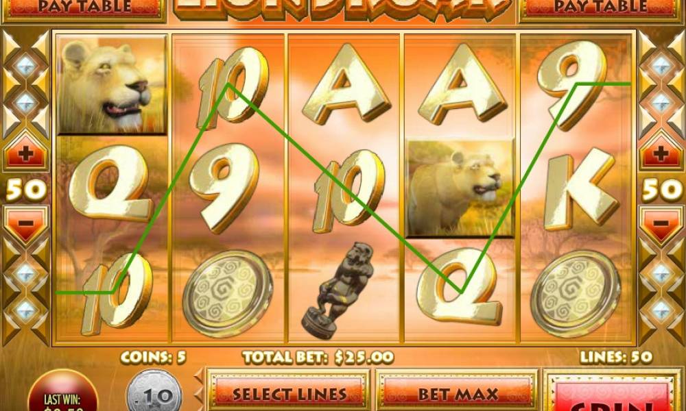 «Lion's Roar» is the five reeled free online slot machine produced by Rival company, playing on which you can activate from one to fifty pay lines. Amounts of the bets per each of the lines are always the same. It is possible to stake up to ten coins of following value: 0.01, 0.05, 0.10 or 0.25 dollars. This way, it is possible to stake from one cent to one hundred twenty five credits per spin.