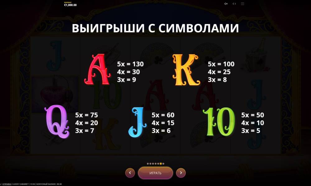 The Lucky Cabaret slot machine from the Red Tiger provider can be played on smartphones and tablets even with low productivity. The rules and payouts are the same as in the board version.