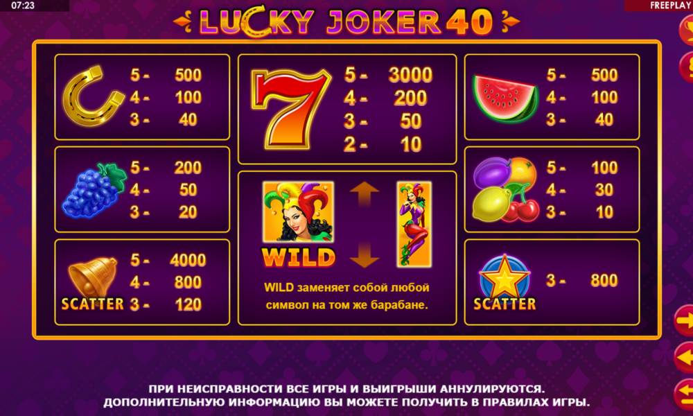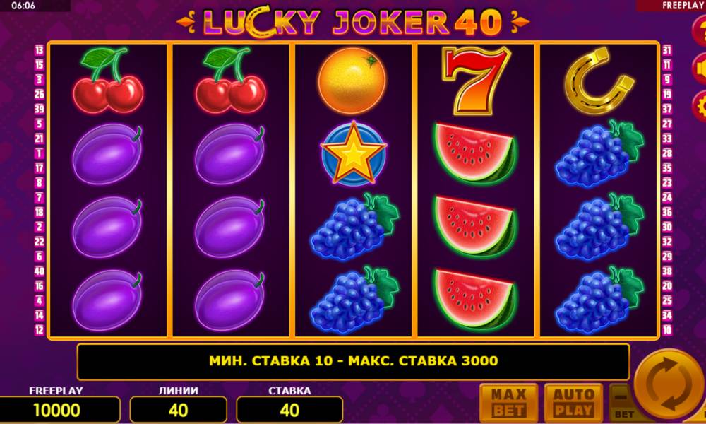 The Lucky Joker 40 slot machine from Amatic Industies can give away excellent prizes of up to 500 bets with the right amount of luck. There are no special features in the game, but even without them the gameplay is very interesting and exciting.
