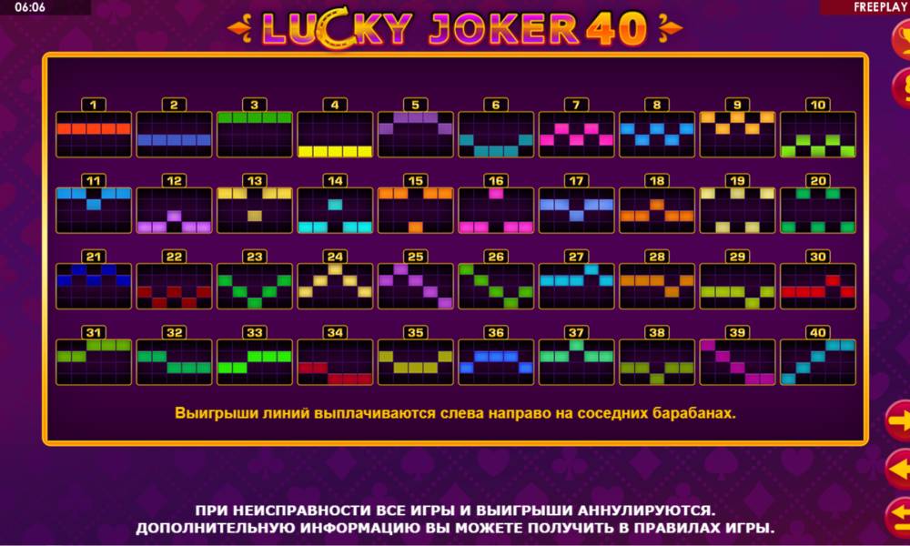 The Lucky Joker 40 slot from the provider Amatic Industies has a classic playing field consisting of 5 reels with 4 symbols in each. Payouts are made on 40 paylines.