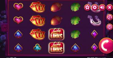The developers have imaged medallions of playing cards shape, four-leave clover, an acorn, a horse-shoe, three sevens and a logo of «Lucky Links» at the reels of this slot machine. All symbols appear in vertical stacks formed of same elements at the reels. Wilds and Scatters are not provided by the rules. Classic free spins are unavailable either.