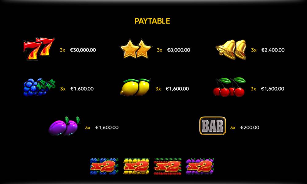 • Multipliers. When the entire field is filled with a single image (plums, cherries, lemons or grapes), the user gets an additional multiplier x2 to pay for combinations on the lines.