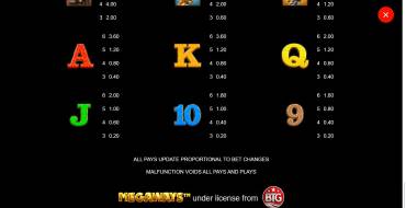 The online slot has 4 progressive jackpots: Mini, Minor, Major and a seven-figure Mega jackpot. They can be won in the wheel of fortune. It can be triggered randomly when Wild symbols appear on the field during normal spins or free spins.