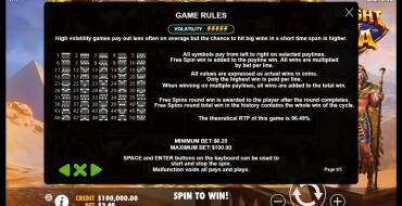 Take into account these parameters when choosing the bet and game strategy. You will not win very often because of high volatility, but prizes can be large.