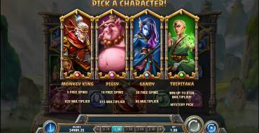 The field of the Monkey: Battle for the Scrolls consists of 5 reels with a height of 3 cells. Up to 432 (depending on the symbol selected in Free Spins) fixed directions are used to make combinations. The maximum win is x10000 of the bet in the current round. A total of 8 regular and 4 special symbols are played in each spin. The bet is set from the range from 0.1 to 100 c.u.. In the normal mode of the game are character bonuses and you can activate free spins.