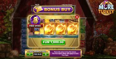 More Turkey has one feature Free Spins Gamble freespins system. This mode is activated when 3 or more Scatter symbols appear. During the free spins, an unlimited win multiplier feature is enabled, which increases by +1 with each winning spin.