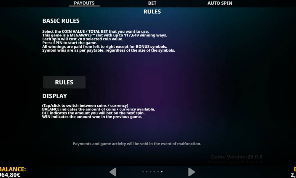 | Bonus games | Free Spins, Bonus Spins, Bonus Game, Free Games, Megaways, Megaways Max |