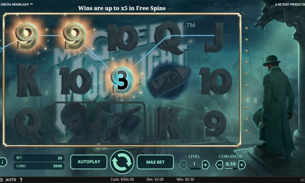 Collecting three or more scattered silver bullets will unlock 10 free spins in Mr. Green: Moonlight.